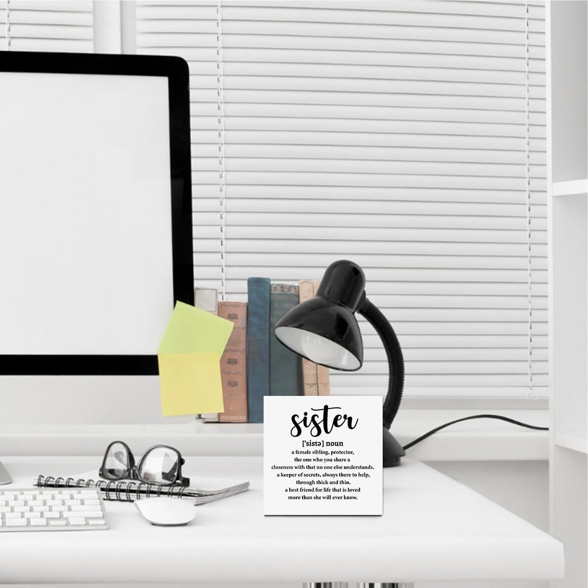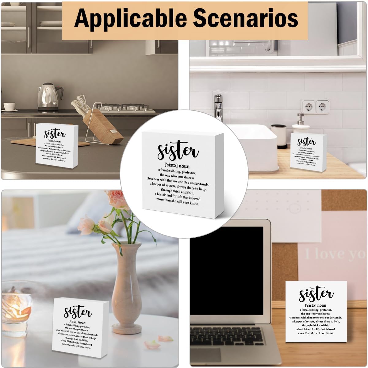 Sister Birthday Gifts Wooden Box Sign, Sister Definition Quotes Wooden Signs, Best Gifts for Bestie Girls, Positive Decor for Farmhouse Home Desk Shelf Tabletop 5 X 5 Inches