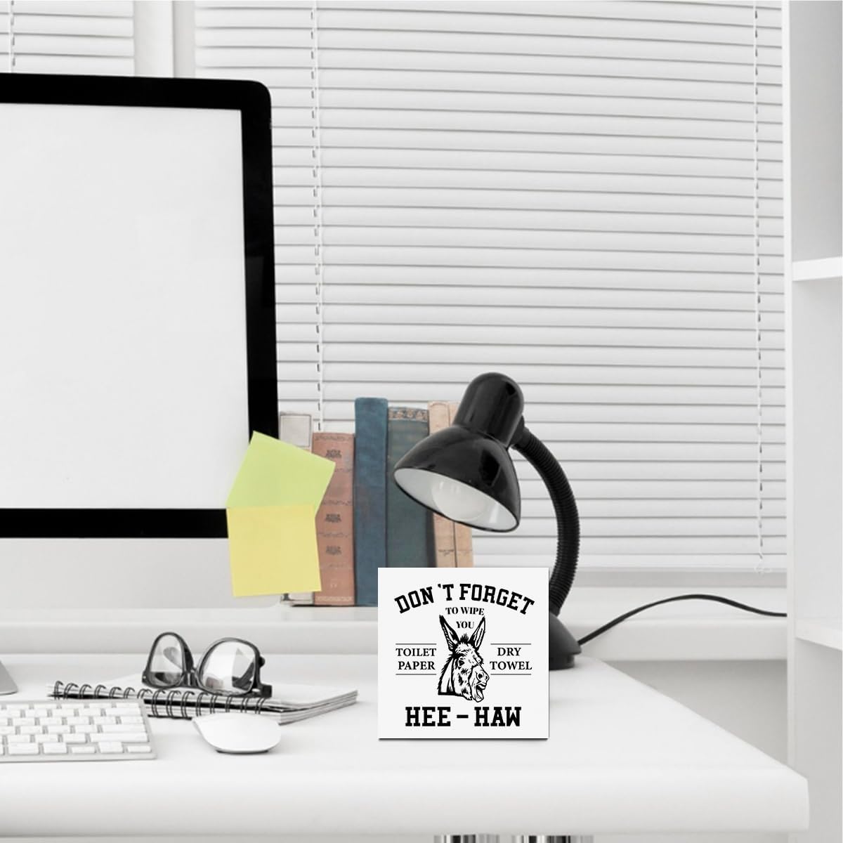 Funny Bathroom Signs Wooden Box Sign, Donkey Humorous wooden Signs, Don't Forget to Wipe Your Toilet Paper, Funny Bathroom Decor for Home Desk Shelf Tabletop Toilet