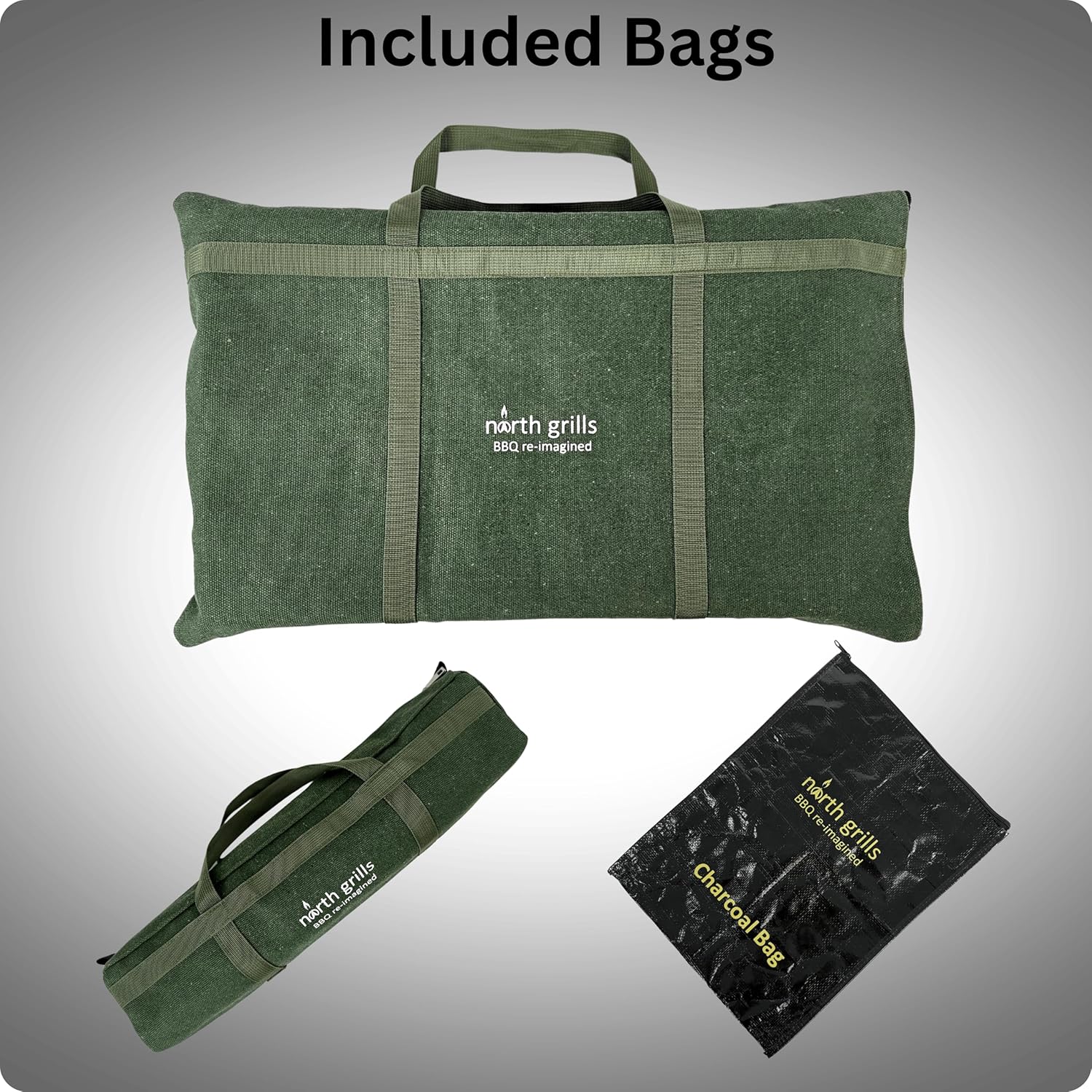 - ๐ฃ๐ผ๐ฟ๐๐ฎ๐ฏ๐น๐ฒ ๐๐ต๐ฎ๐ฟ๐ฐ๐ผ๐ฎ๐น ๐๐ฟ๐ถ๐น๐น ๐ฆ๐๐ผ๐ฟ๐ฎ๐ด๐ฒ: Heavyโduty grill bag, skewer/accessory bag, charcoal bag, and tieโdown strap for organized transport.