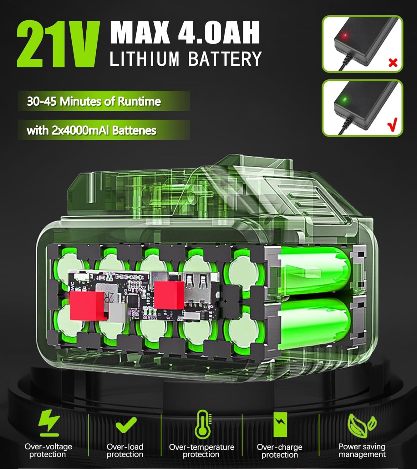 - 【Long-Lasting 4000mAh Battery】Electric Weed wacker battery operated equipped with two 4.0Ah lithium batteries, cordless brush cutter provides up to 40 minutes of runtime on a single charge—no need for frequent recharging. Unlike gas or corded trimmers, it offers the freedom to move without limitations.