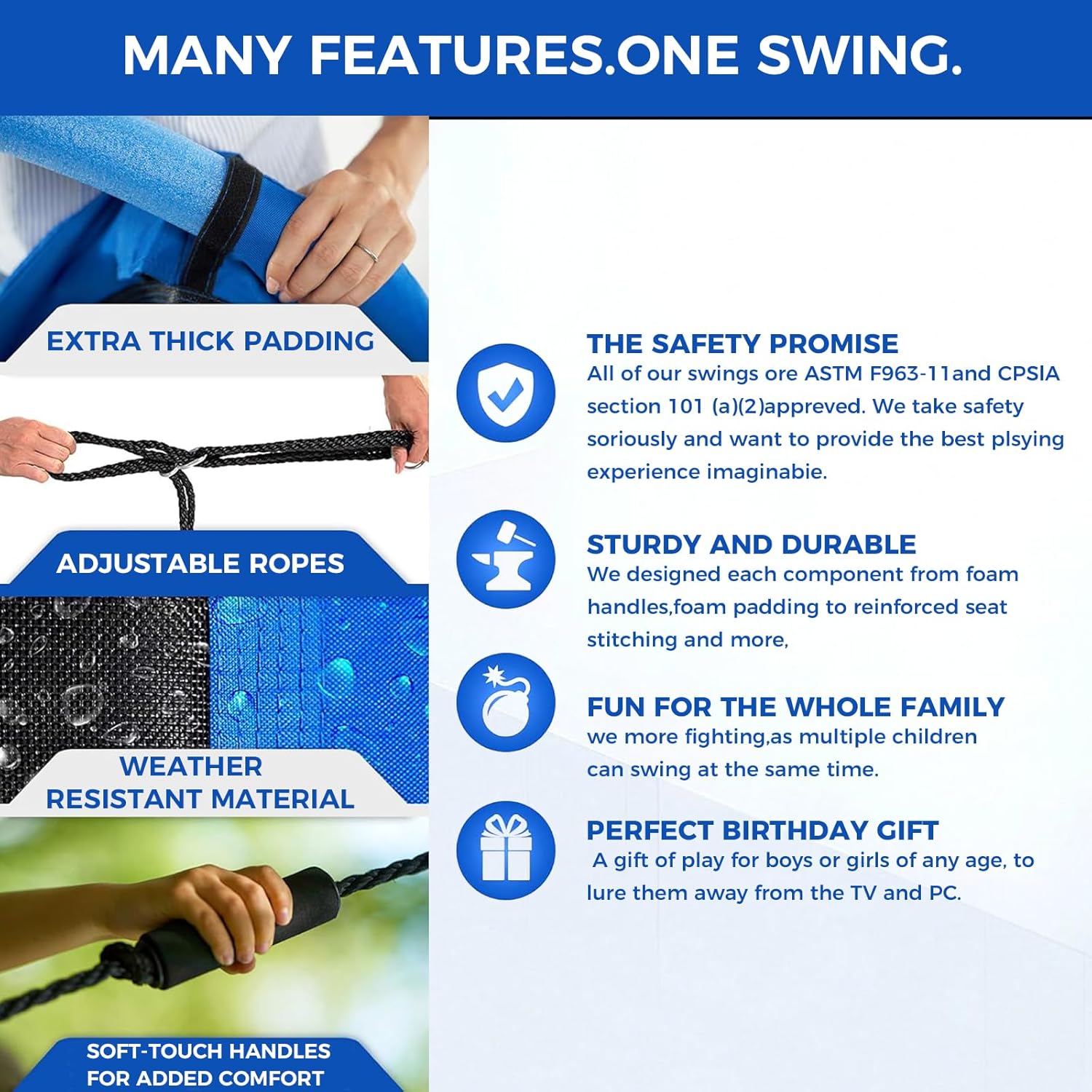 - Effortless Assembly For Family Fun: With the included hanging kit and adjustable ropes, you can set up this outdoor swing for kids in minutes on a swing set, tree, pergola, or playground, enhancing your family's outdoor experiences