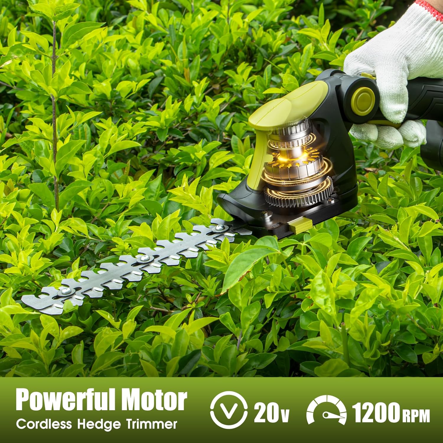 - [SPECIFIC 2 - IN - 1 TOOL] Say hello to your new garden essential! Our electric hedge trimmer and grass shear combination allows for seamless task - switching. Thanks to the blade release buttons, you can effortlessly swap the 4.7 - inch grass shear blade for trimming lawn edges and small areas, or the 8 - inch long blade for trimming thin shoots on hedges, bushes, trees, and ornamental shrubs. This tool is engineered to help you complete your gardening tasks quickly and efficiently.