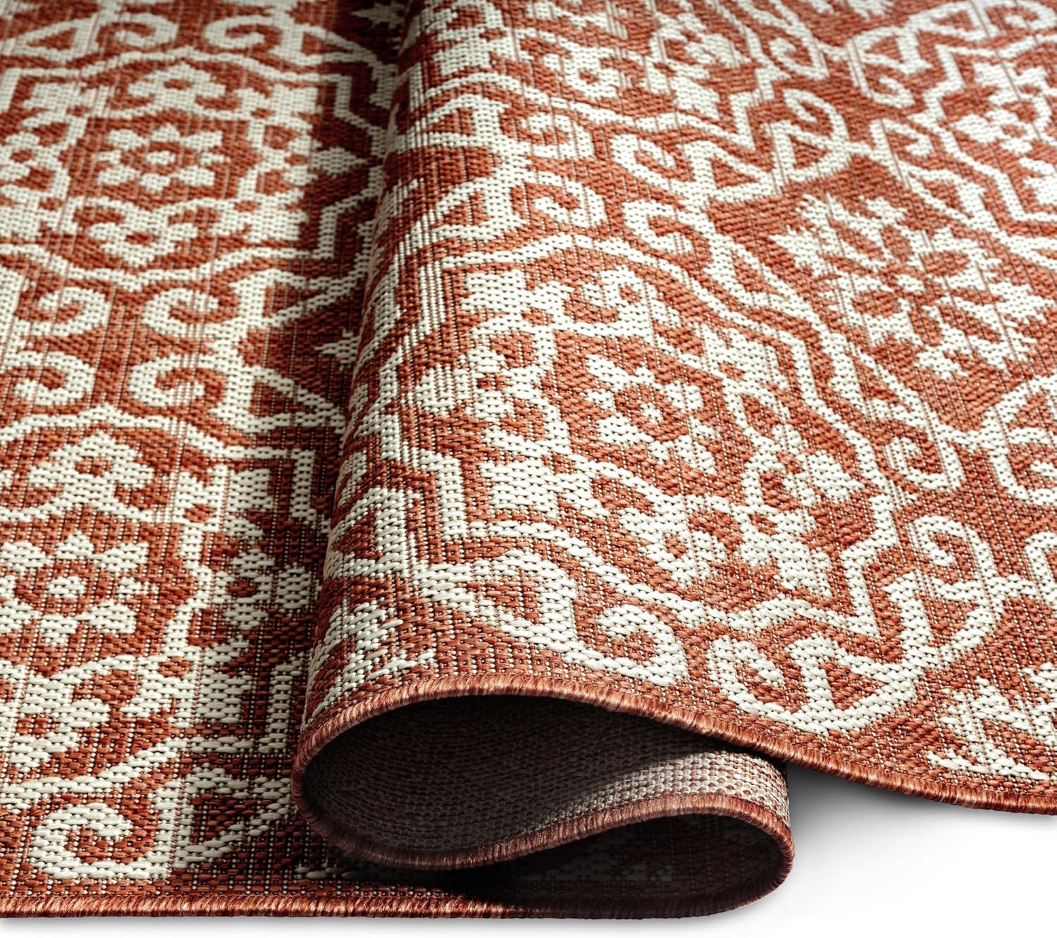 Nicole Miller New York Patio Country Julia Transitional Geometric Indoor/Outdoor Area Rug, Terracotta/Ivory, 7'9"x10'2"