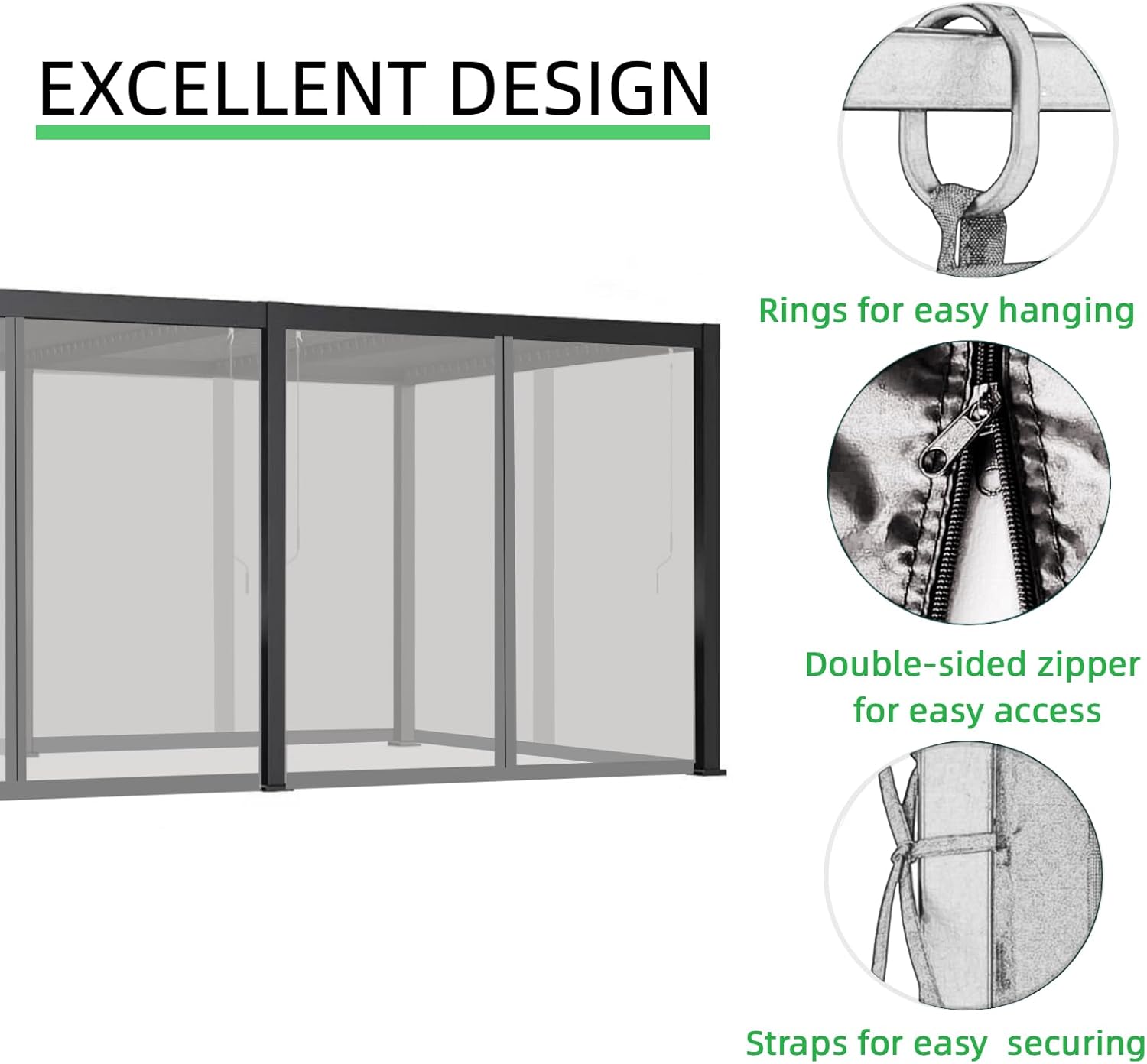 - 【Easy to Install】We provide plastic snap rings for easy hanging. Insert the rings into the netting loops and hang them over the gazebo or pergola frame. Then tie the netting's straps to the posts.