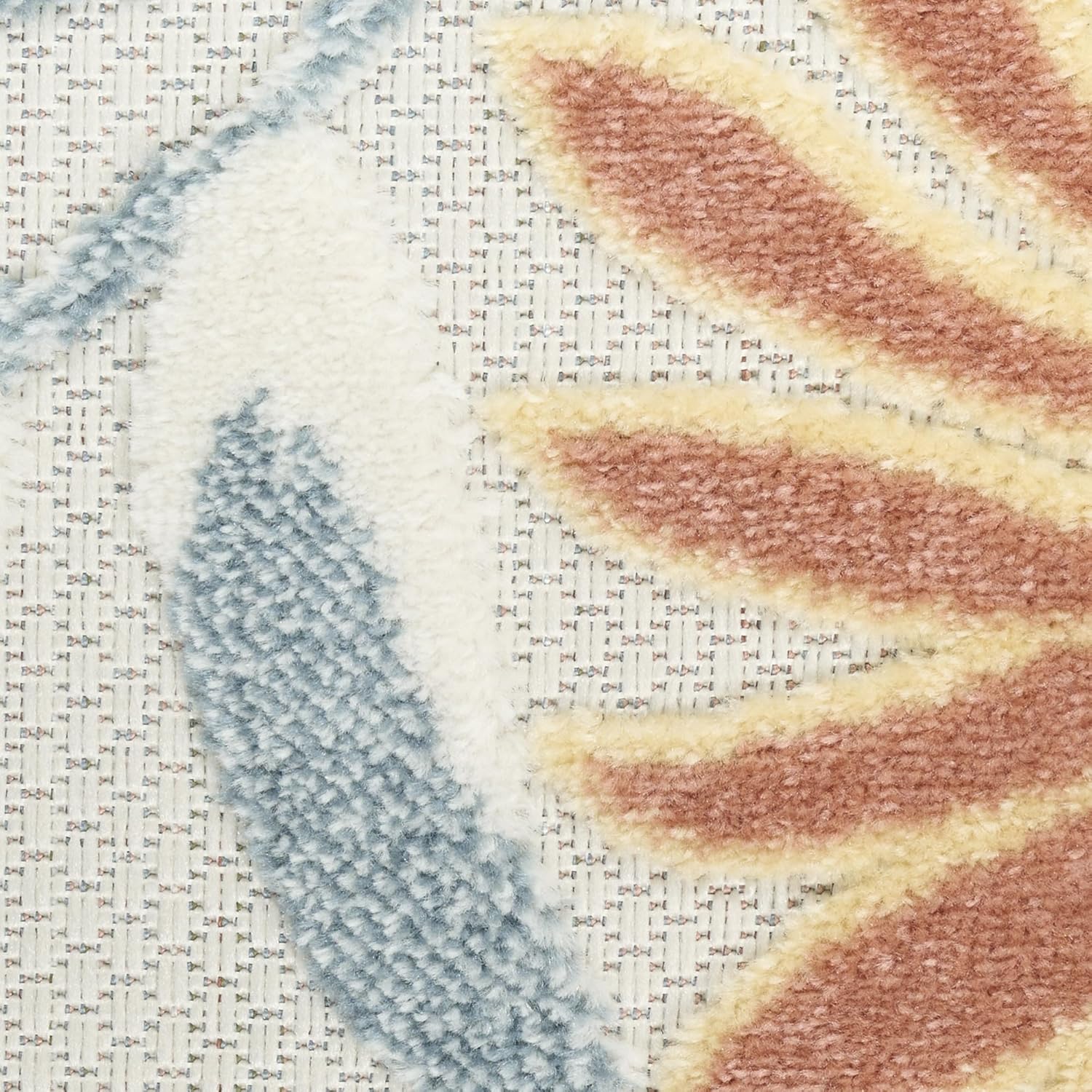 - Flat weave with raised, cut patterns for a delightfully textured feel