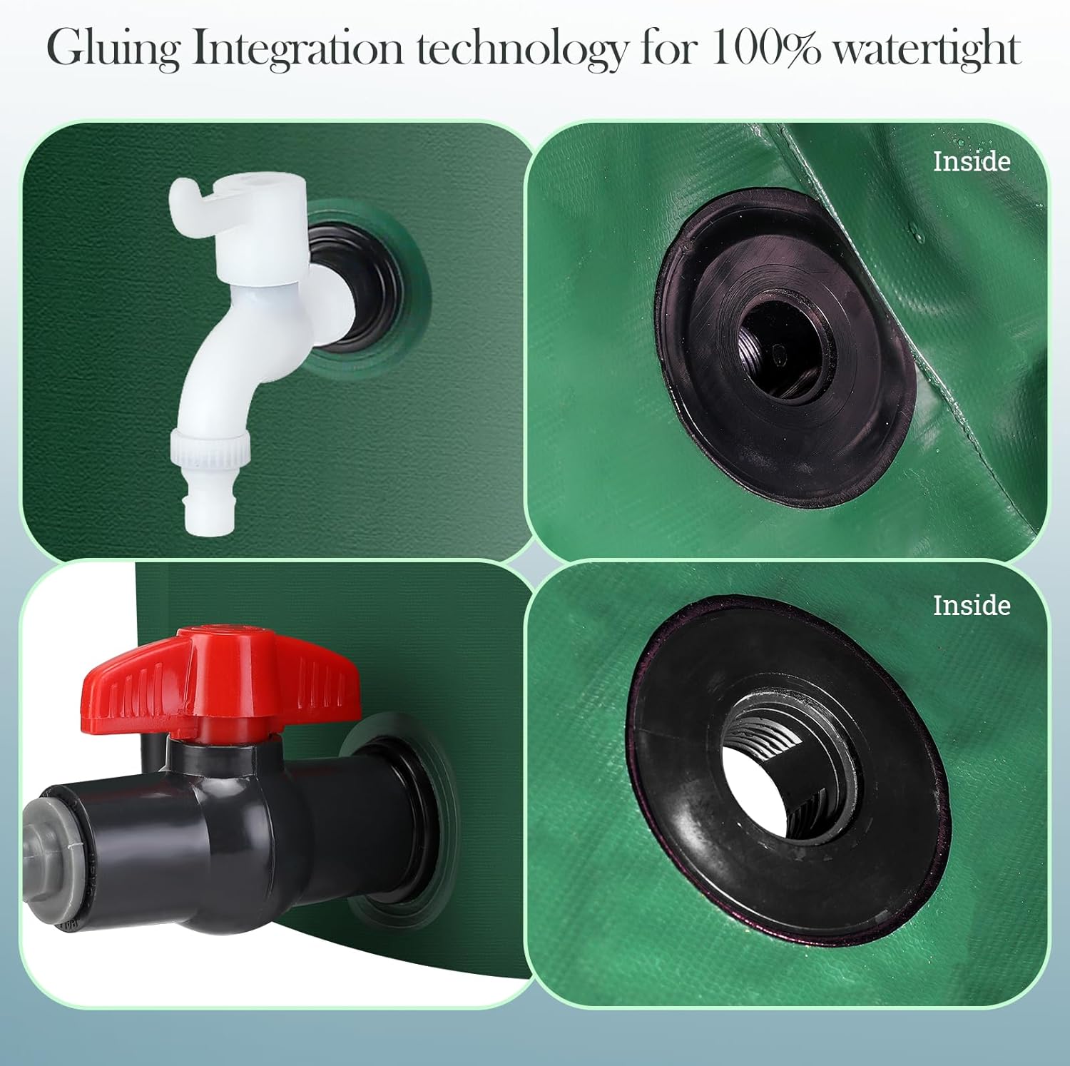 - 【Premium Quality & Durable】Our portable rain barrel is built with high - performance triple - 3-ply PVC material. This excellent construction protects it from UV rays, heat, sharp objects like twigs, and avoids tearing, so no leakage will happen. Supported by strong rods and a reinforced frame, the collapsible rain water barrel won't collapse or deform even in bad weather like heavy rains or strong winds