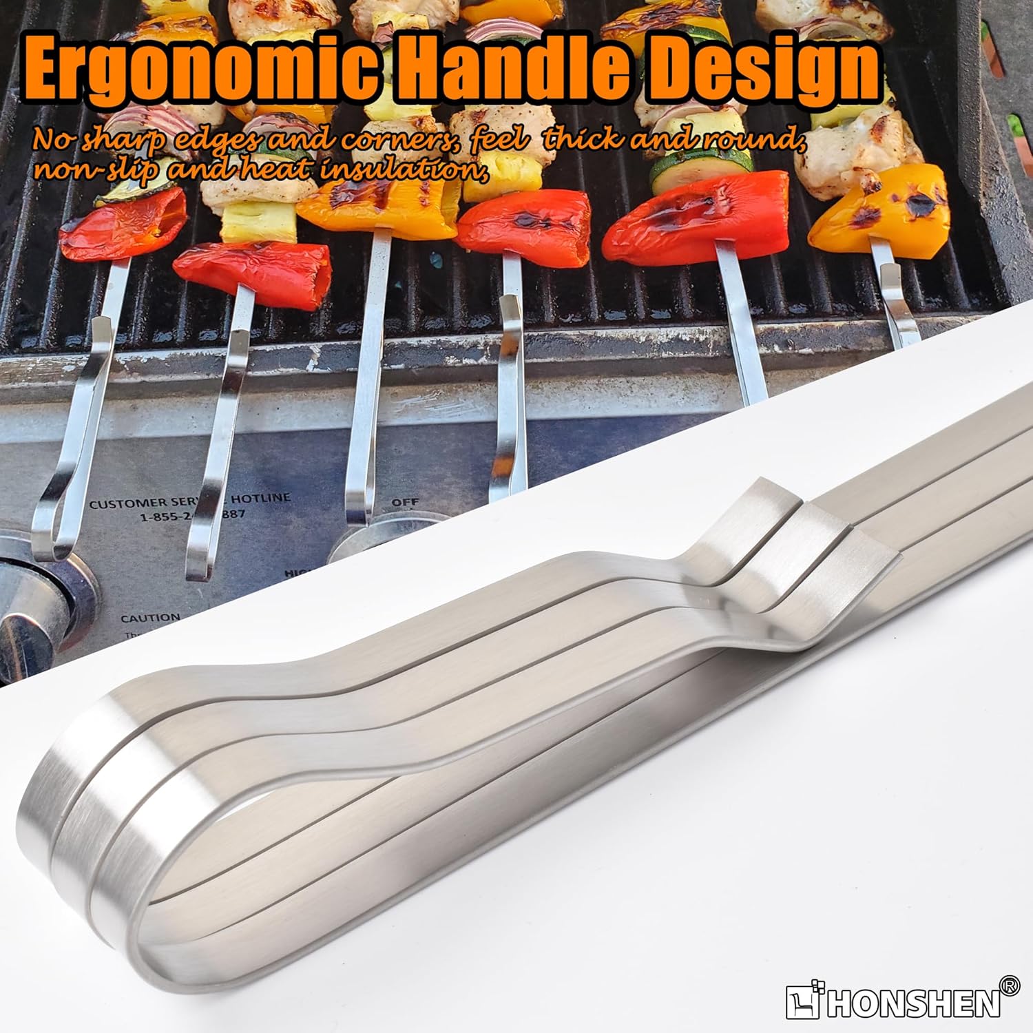 - ONE-PIECE DESIGN: These bbq skewers solid and durable construction holds much more weight than flimsy wooden ones so you can enjoy loading the stick up with meat, veggies or dessert combinations. Thoughtfully designed with a sharp tip that allows you to pierce food easily without any hassle. The main flat body of the skewer make moving and turning food effortless without the hassle of food sliding around on the skewer;
