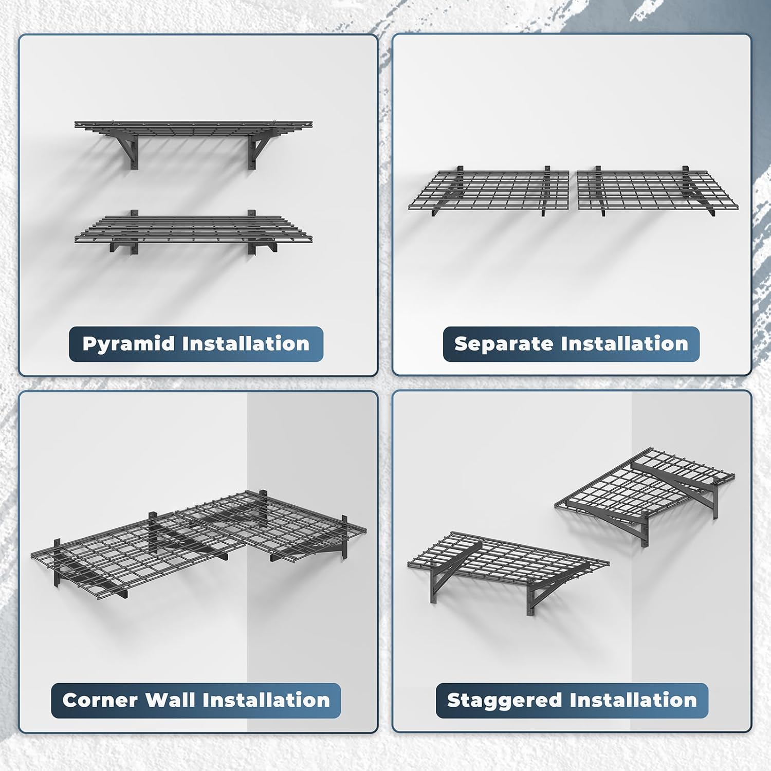 - 📦【All-in-One Mesh Storage】- The seamless welded mesh design securely holds tires, sports gear, toolboxes, and plastic bins without sagging. Open-grid airflow prevents dust buildup, while the anti-rust coating ensures durability in humid garage environments.