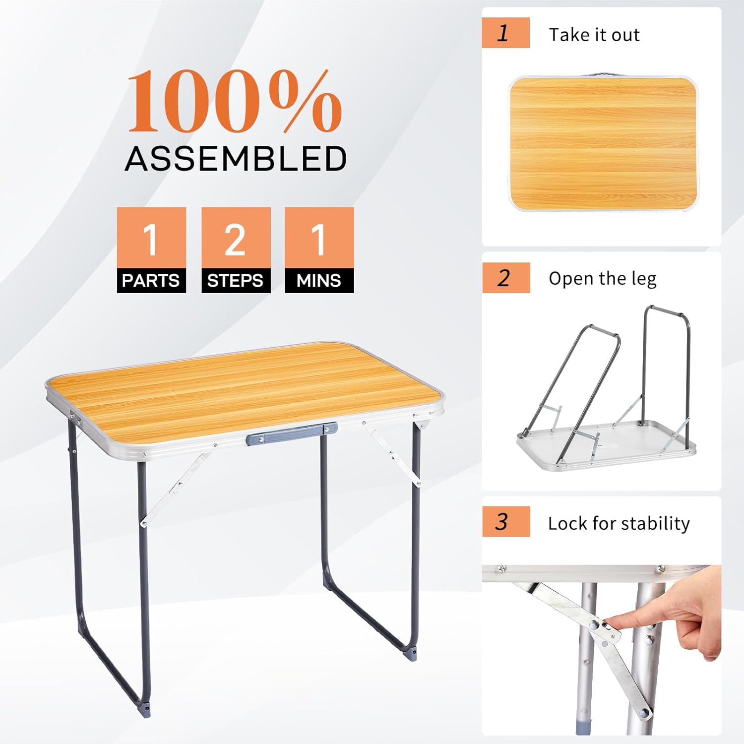 - 【CONVENIENT DESIGN】The rv outdoor table can be easily opened in seconds with just a few simple steps. Quickly fold with the side locks and carry handle. The desktop features fiberboard that is easy to clean stains only by swiping. The 3ft folding table provide convenience in a variety of places for you