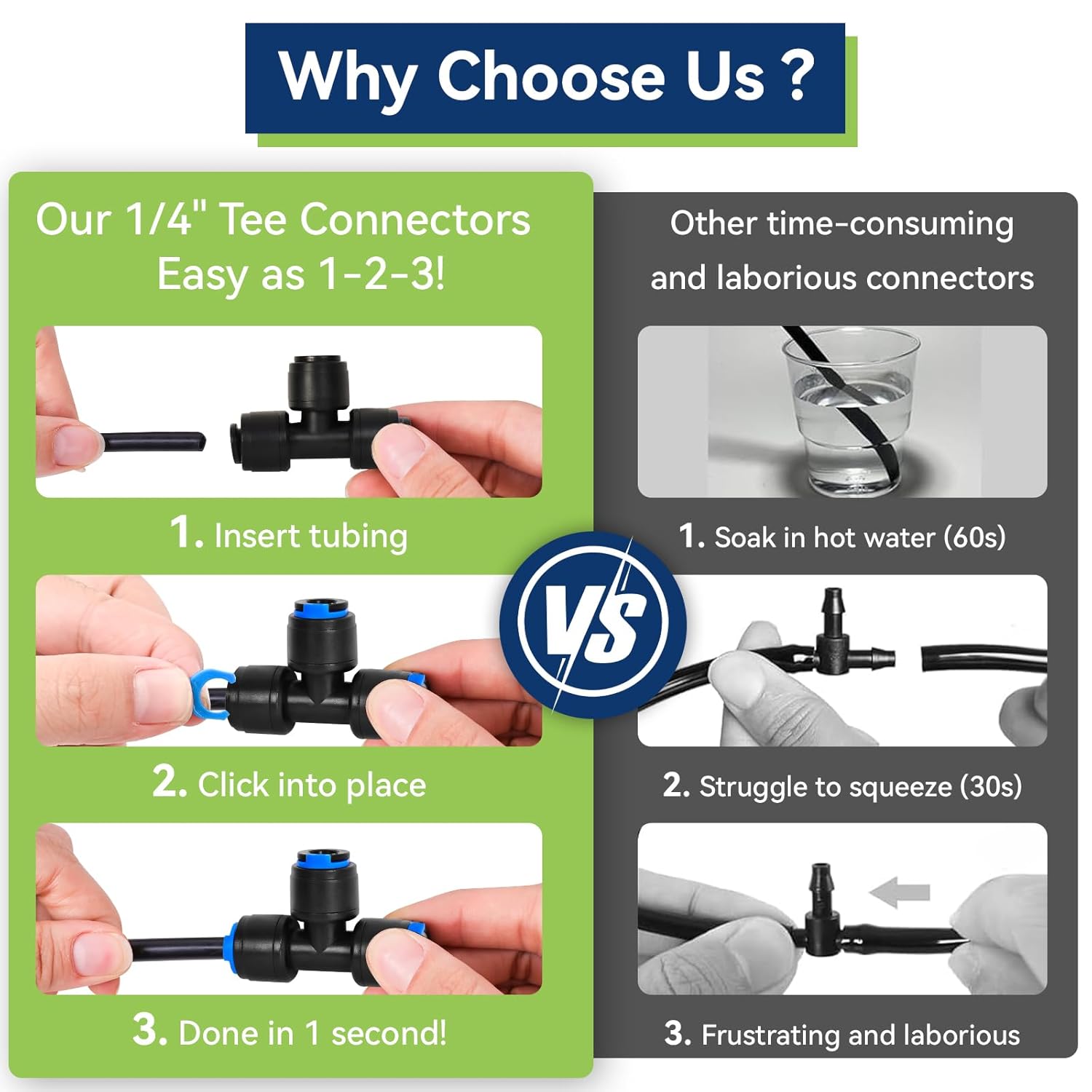 10 Pack 1/4" Drip Irrigation Tee Connectors, Quick Connect Universal Drip Irrigation Tubing Coupling Valve, Connector Locking Fitting for Sprinkler or Drip Irrigation System