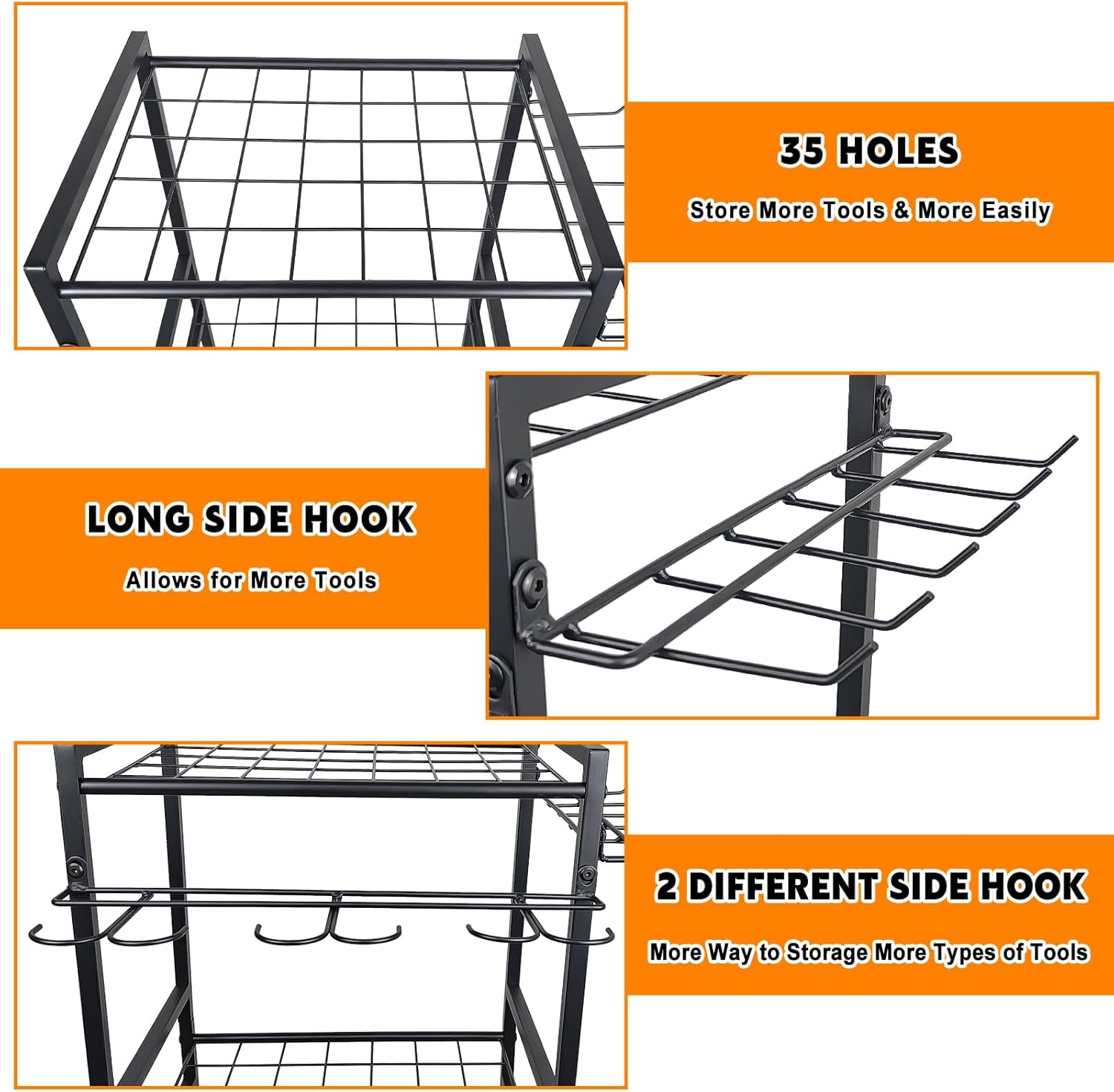 - Large Capacity: Our garden tool organizer is a versatile solution for decluttering your space. The garden tool holder features 35 tool slots, three shelf, and two side hooks, offering a large capacity within a compact size, up to 78 garden tools
