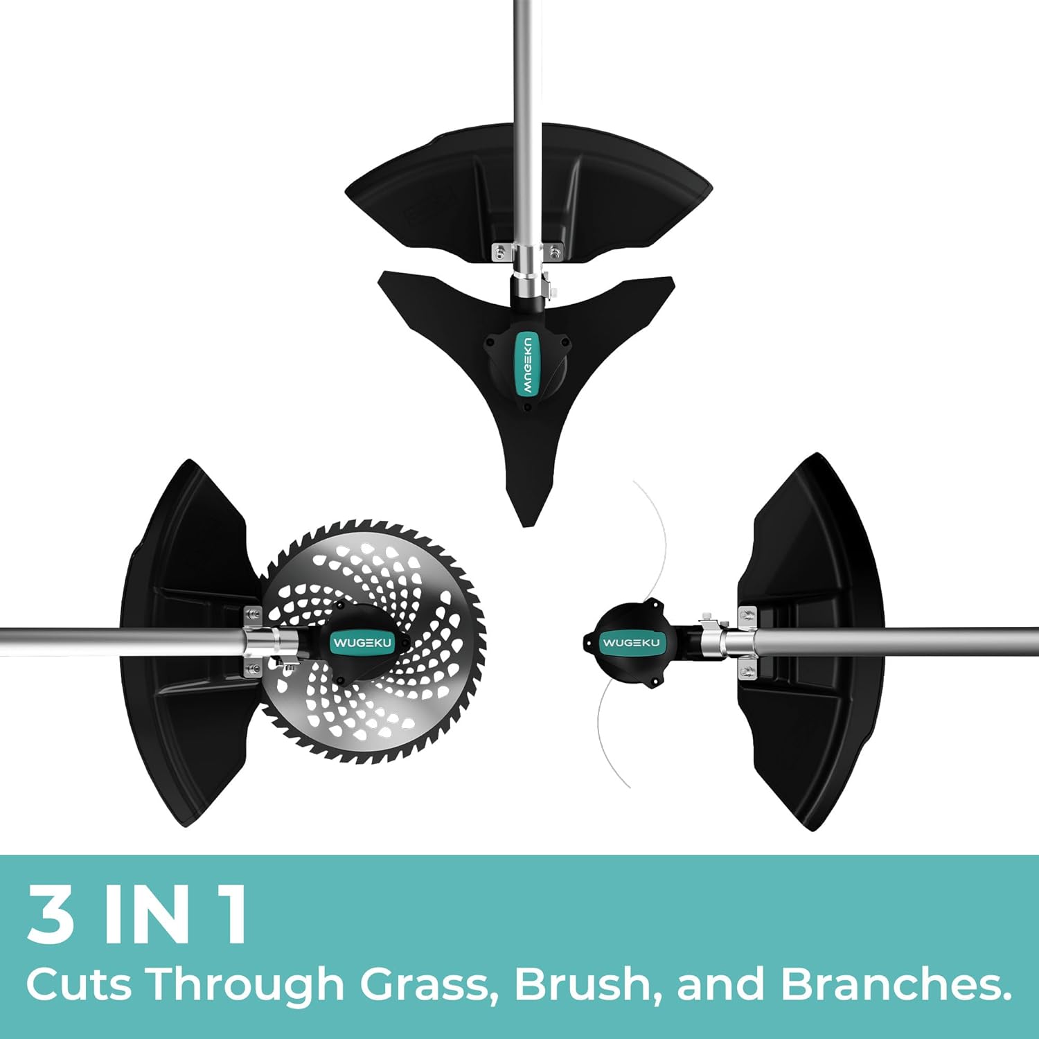 - VERSATILE CUTTING: equipped with 3T blade, 40T blade, and string spool—each with two replacements—to handle trimming, edging, and heavy-duty cutting across various gardening tasks with ease.