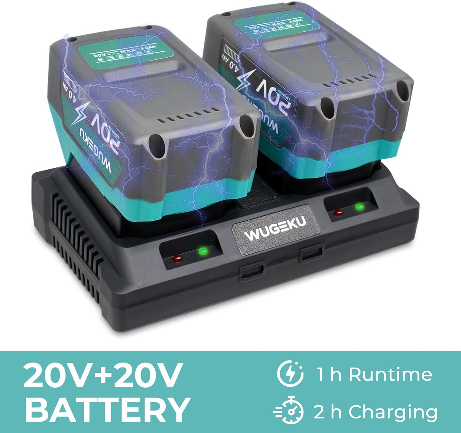 - DUAL BATTERIES: includes two 20V 4.0Ah lithium batteries and a dual-port charger; fully charges in 2 hours and delivers 40V power when combined, ensuring strong and efficient performance.
