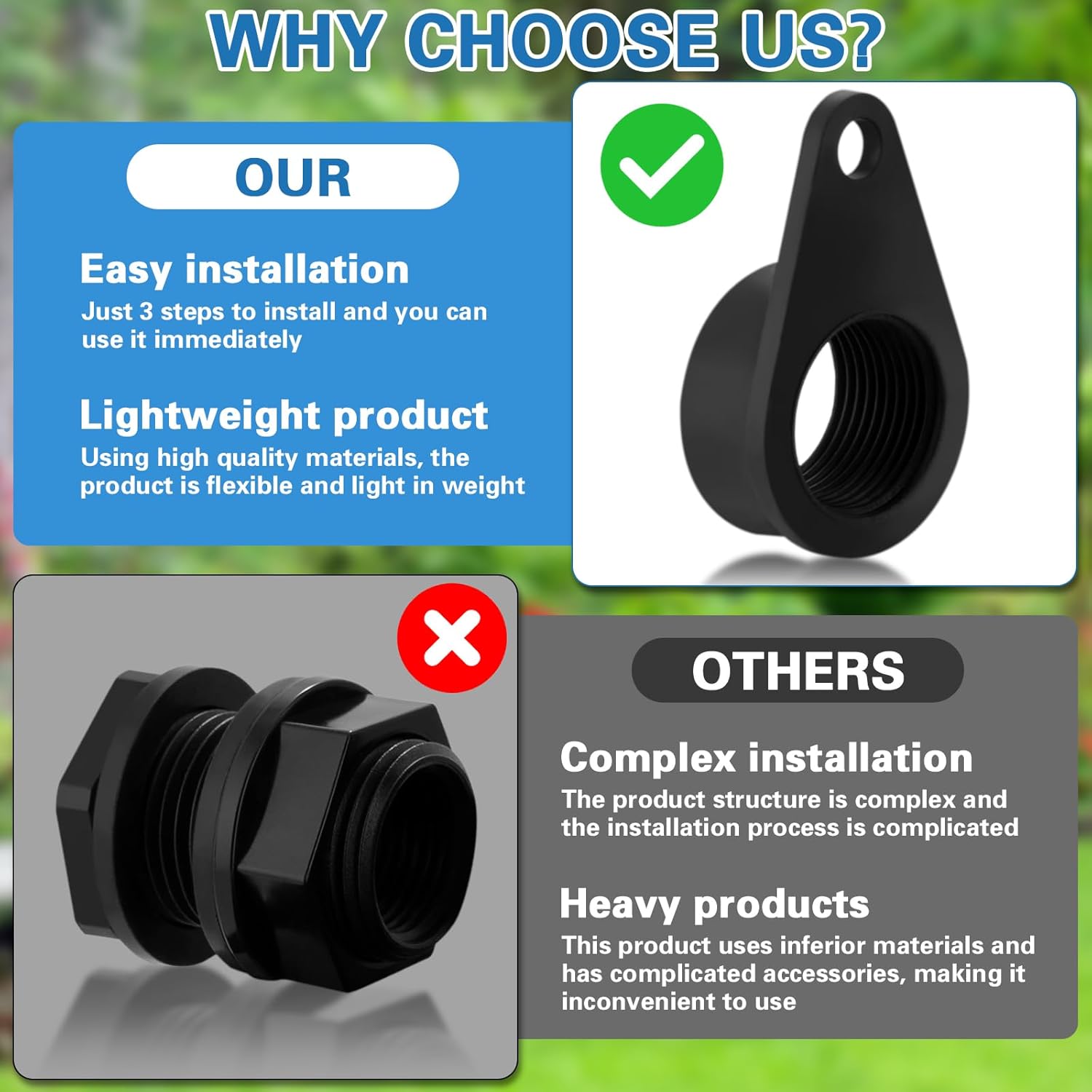 - Convenient Switch Rotation: Rain barrel spigot is easy to rotate the switch valve to open or close the Rain Barrel Spigot