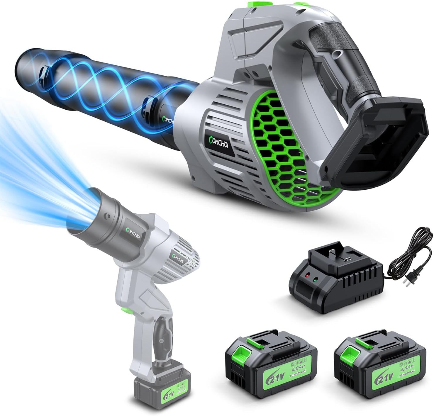 - šš¢š š”-ššš«ššØš«š¦šš§šš ššØššØš«: Comchoi leaf blower adopts advanced axial flow fan, engineered with a robust 900000 RPM motor, the cordless leaf blower ramping up the maximum air speed to an impressive 200MPH, variable speed dial up to 700 CFM for ultimate control