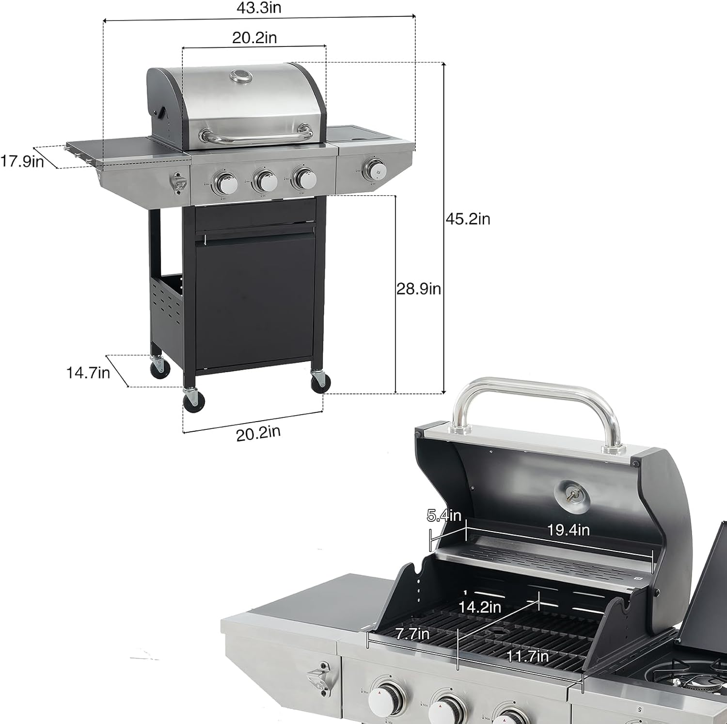 - Product Dimensions : 17.9"D x 43.3"W x 45.2"H