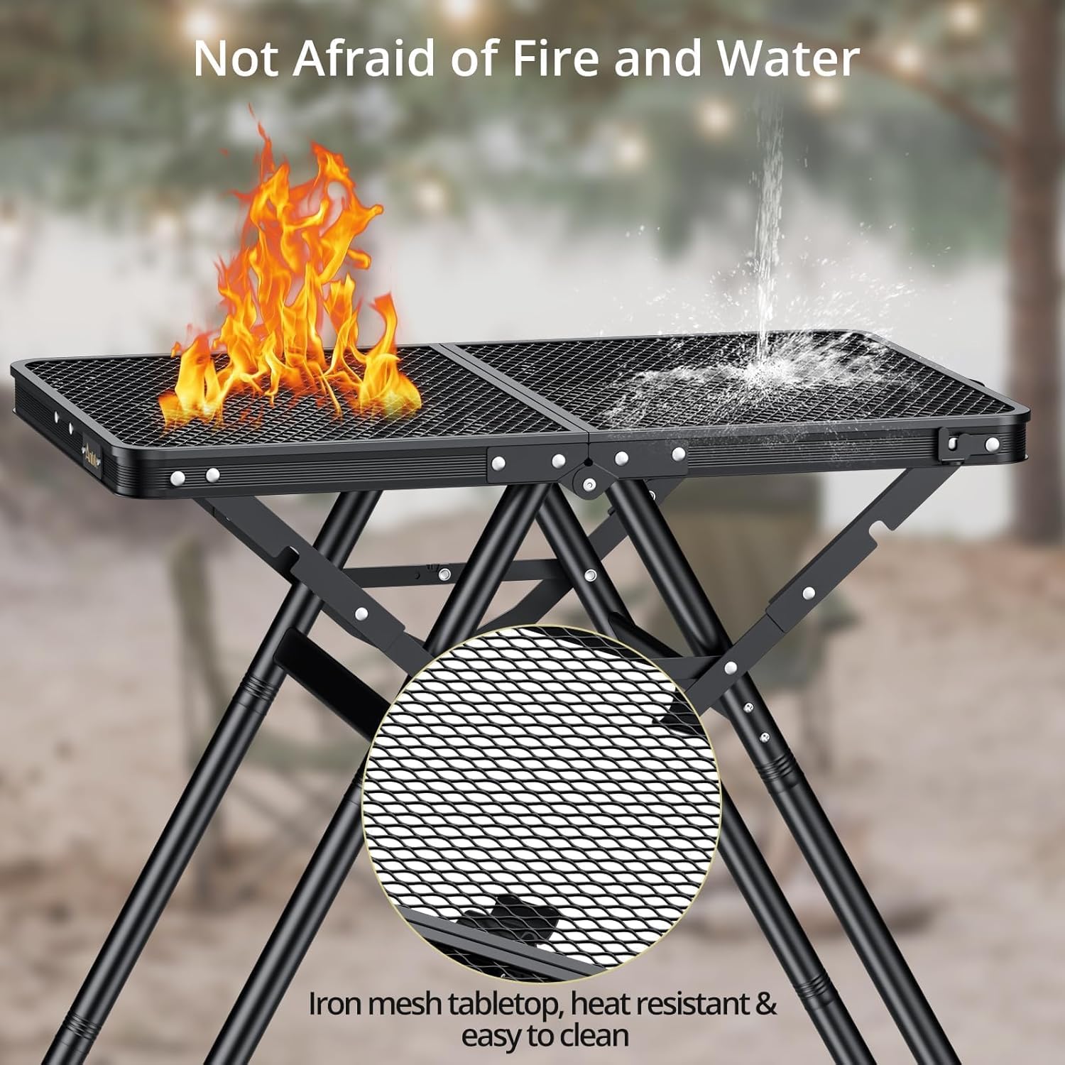 - Iron Mesh Table Top, Heat Resistant & Easy to Clean: The tabletop is designed with a unique coated metal mesh that prevents the tabletop from rusting or warping due to standing water. And it reduces surface stains, which can be easily removed by simply wiping with a damp paper towel