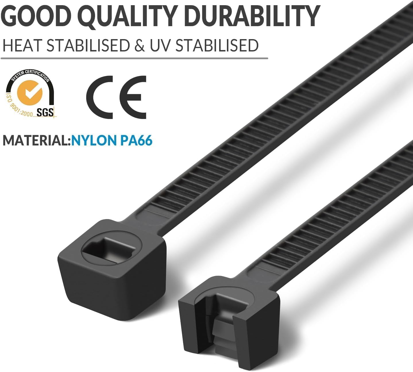 - ★【Great Design】Self-locking fastener design, sturdy and durable, easy to operate. The width of our cable tie is 0.18inch/4.8mm, which makes the cable tie stronger than the same size cable tie on the market and tensile strength could handles most purpose of binding in life.
