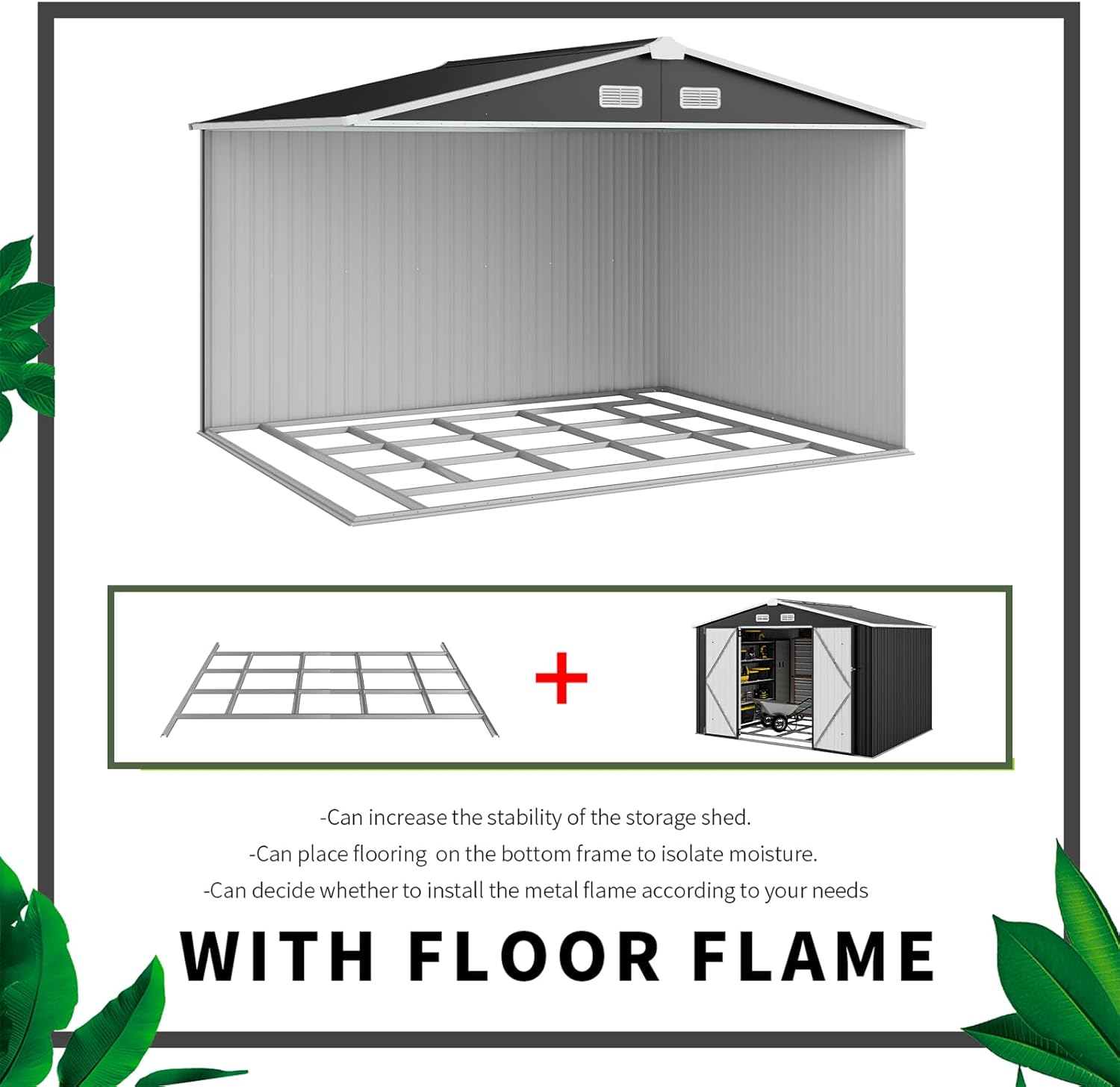 • Multiple Storage Modes: The Outdoor storage shed, measuring 7.6 x 9.7 FT, offers ample space for all your outdoor storage requirements. This durable metal garden shed is applicable for storaging accommodate snow blowers, shovels, outdoor chairs, bicycles, and toy cars. Additionally, you can consider purchasing storage racks to optimize the organization of items such as shovels, umbrellas, antennas, escalators and more on this versatile outdoor storage solution