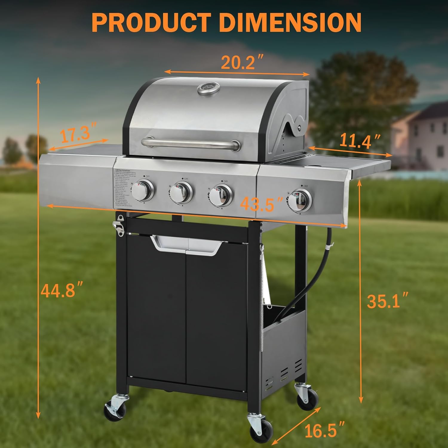 3-Burner Propane Gas Grill with Side Burner, 40,500 BTU Stainless Steel BBQ - Easy Assembly & Grease Management for Patio, Backyard, Camping (3+1Burner)