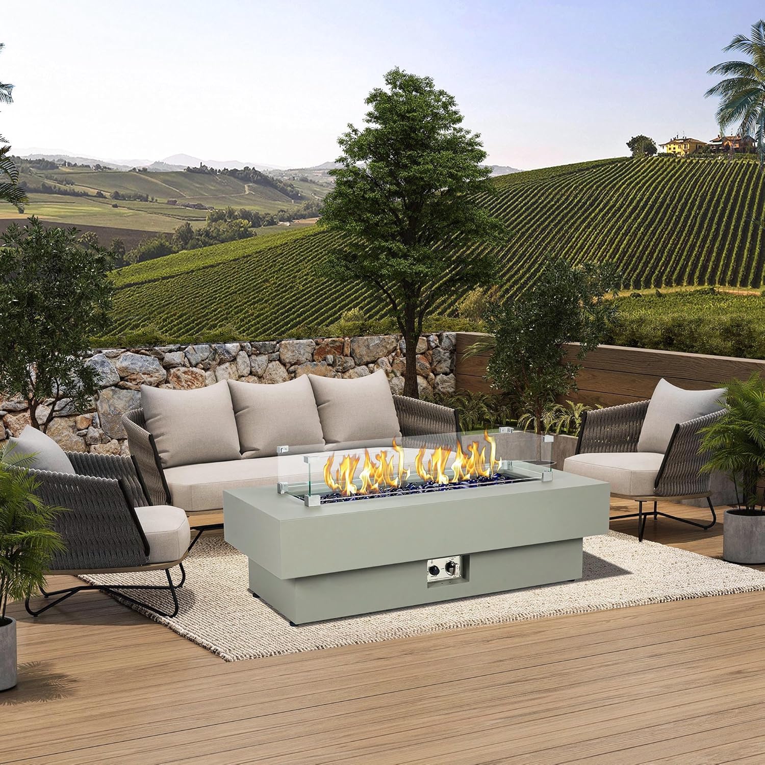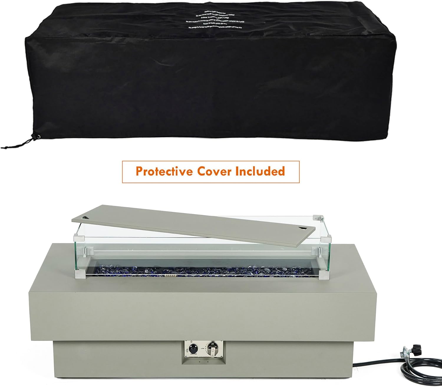 48-inch Fire Table with Natural Gas Conversion Kit & Wind Glass Shield, 50,000BTU Outdoor Modern Patio Fire Pit Table w/Rectangular Burner Lid, Glass Rocks, Cover