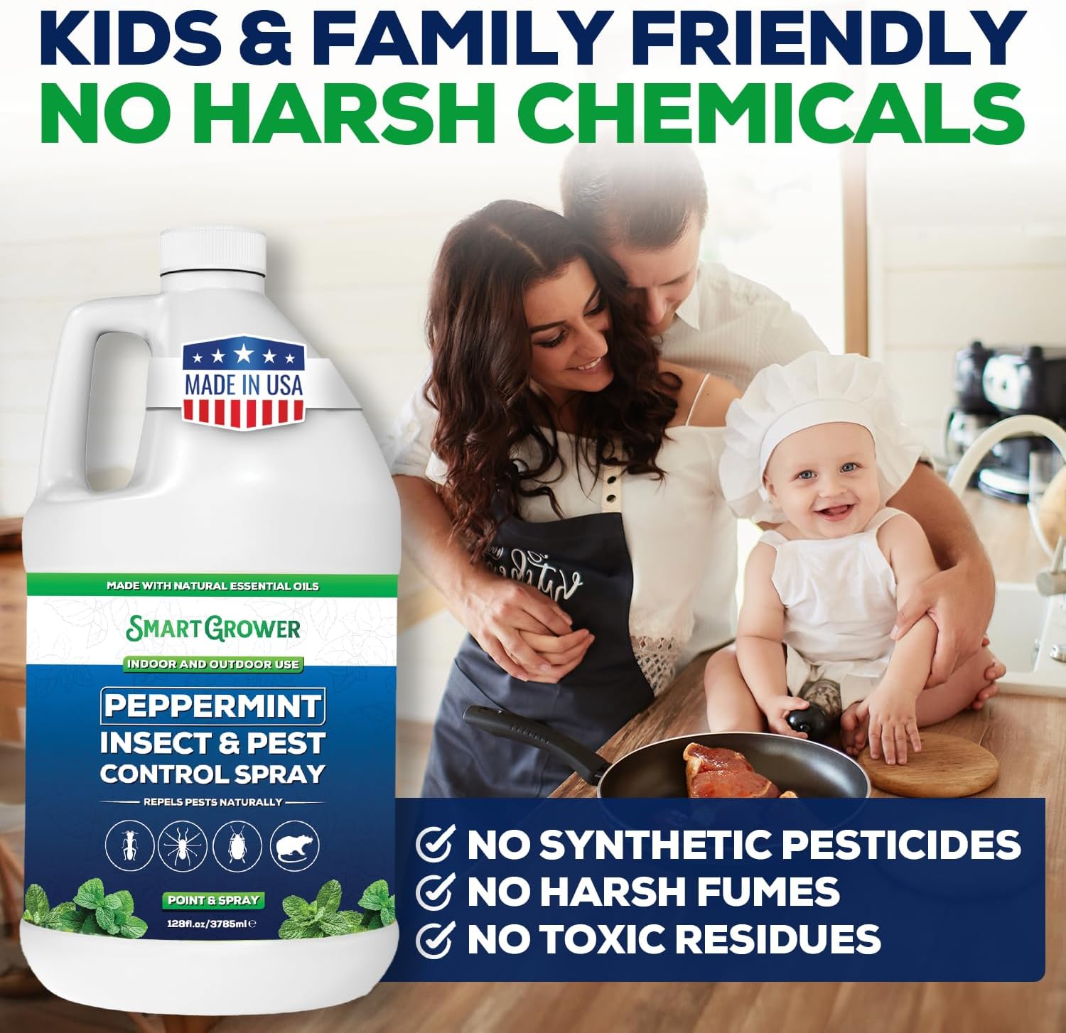 All Natural Peppermint Oil Insect & Pest Control Spray Repels Mice, Spiders, Ants, for Home, Indoor, Outdoor, Garden Maximum Strength Smart Grower Ready to Use 128 FL OZ
