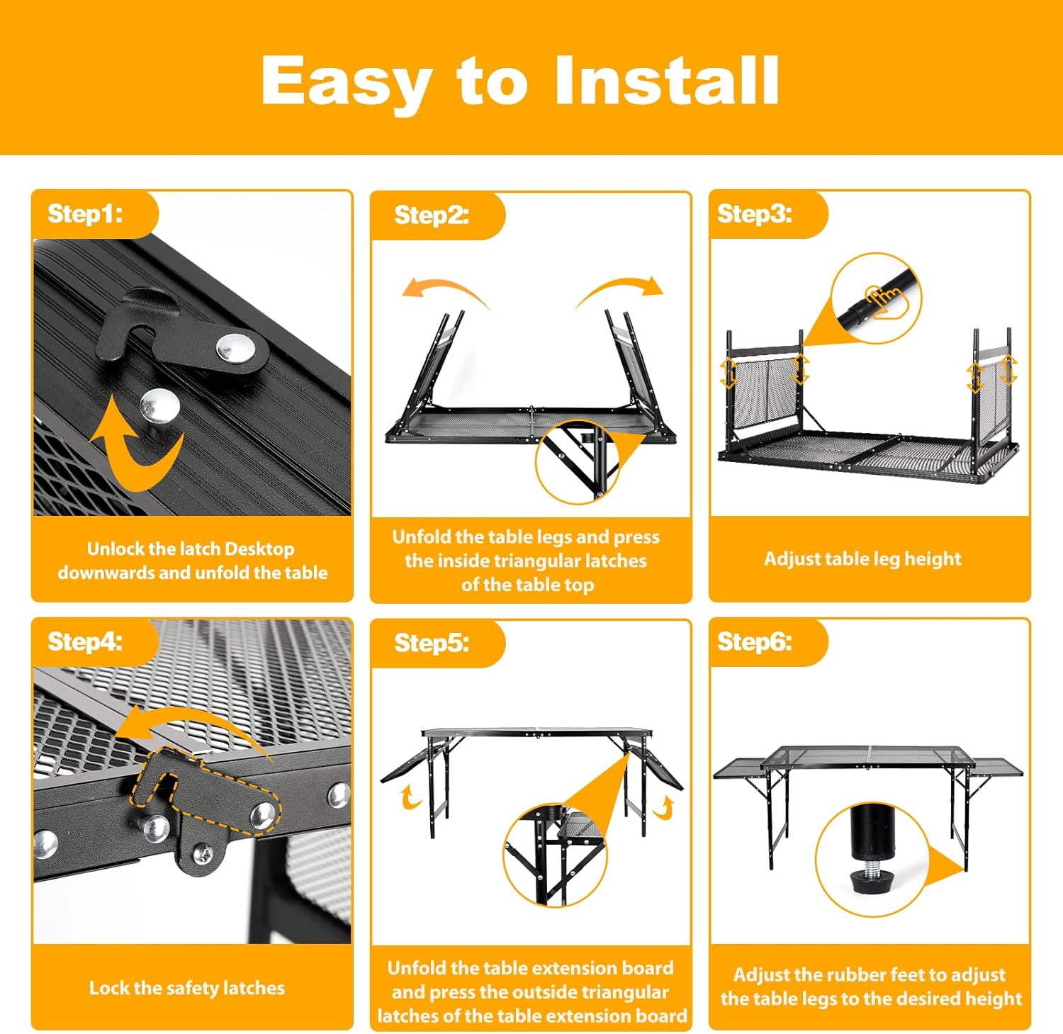 - Heat & Waterproof TOP - Moosinily portable grill table, with 1.6mm steel mesh top covered by powder painting, perform well no matter in heat or in water. The eage of the steel mesh has been polished so it would not be sharp for hands. The thicker 1050A aluminum alloy frame with diameter 25mm is lightweight, anti-corrosion and rust resistant which can use for most outdoor scenes in several year. The desktop and frame can be quickly cleaned with a damp cloth, so you don't have to worry about stains