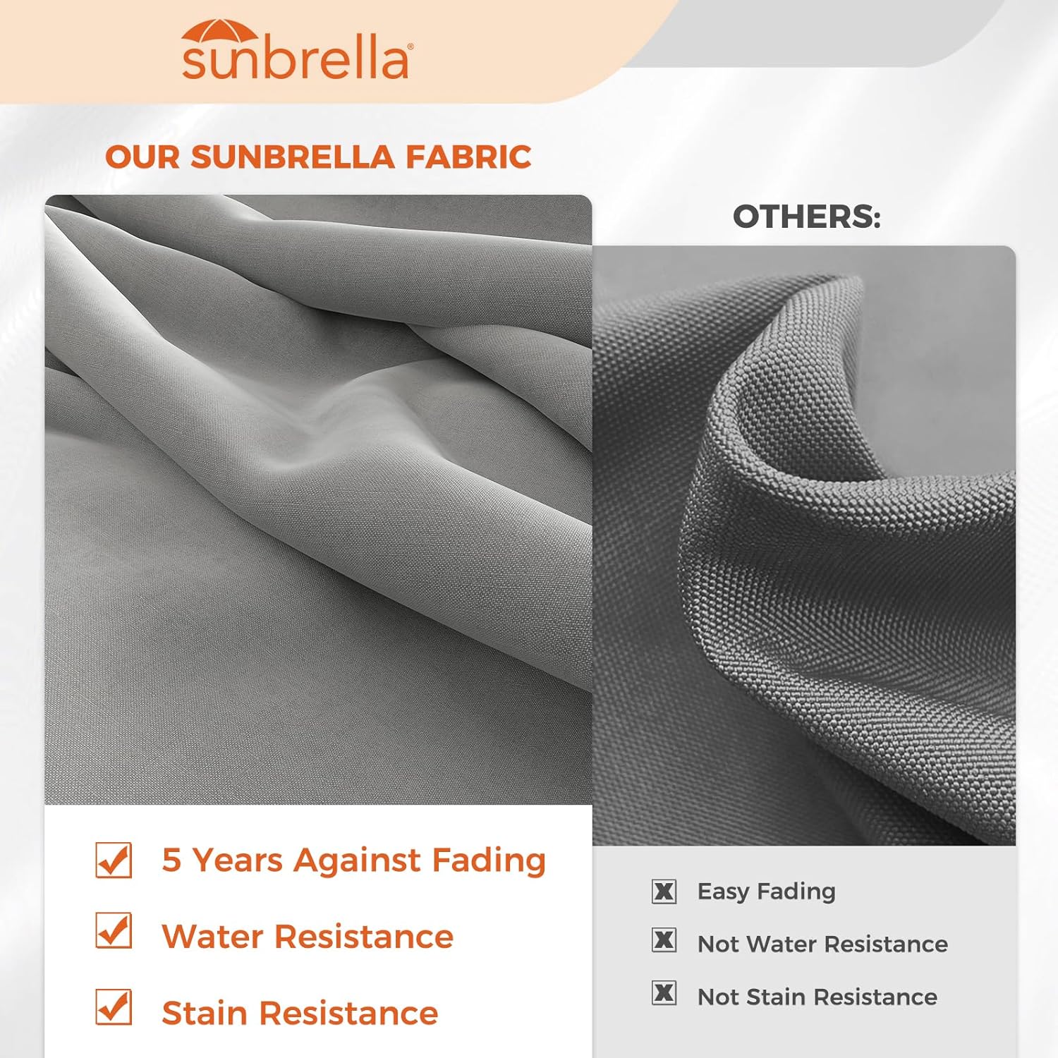 - SUNBRELLA FABRIC: Premium quality umbrella canopy made from industry-leading Sunbrella fabric, 270-gram breathable outdoor fabric, 100% solution-dyed acrylic, 5 years fade-resistance, water and stain resistance, added sun protection against skin damage