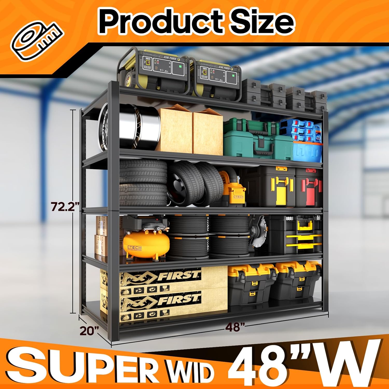 Garage Shelving Heavy Duty,5 Tier Adjustable Metal Shelving Storage Rack,Storage Shelves,48" Wx20 Dx72.2 H,Industrial Shelving Unit for Basement,Warehouse,Garage Organization.4 Pack